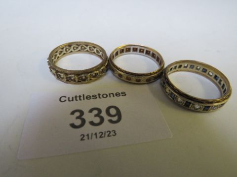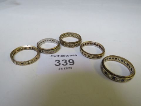 FIVE 9CT GOLD VINTAGE ETERNITY RINGS, APPROX W 14.4 G