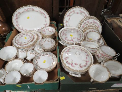 TWO TRAYS OF MAINLY ROYAL ALBERT DIMITY ROSE DINNER WARE AND SALISBURY CHINA