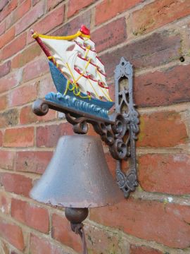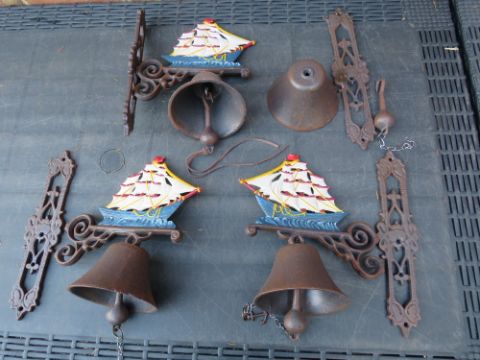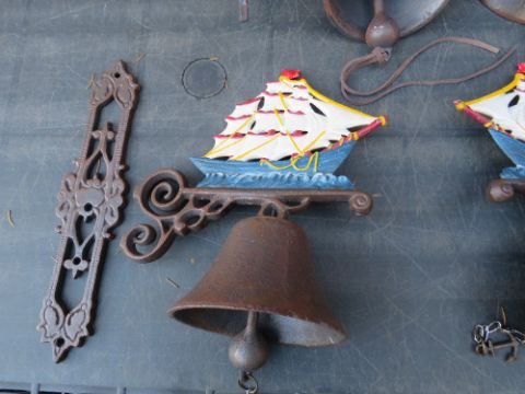 THREE CAST WALL MOUNTED SHIPS BELLS ETC