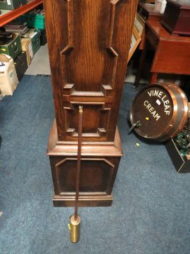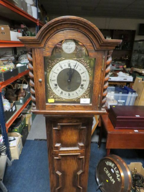A MID 20TH CENTURY OAK CASED GRANDMOTHER CLOCK - PENDULUM H-167 CM
