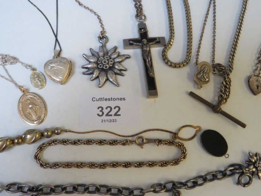 A QUANTITY OF ASSORTED WHITE METAL AND OTHER CHAINS AND NECKLACES ETC