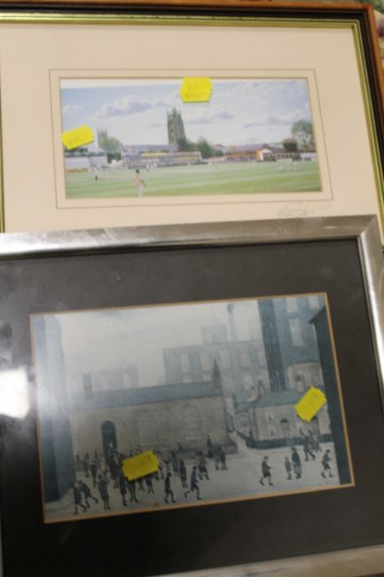 A LARGE FLORAL PRINTS & MILITARY CRICKET PICTURES ETC