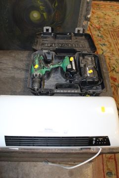 A BLYSS WALL MOUNTED HEATER AND AN HITACHI CORDLESS DRILL