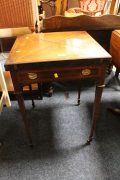 AN EDWARDIAN MAHOGANY HANDKERCHIEF GAMES TABLE