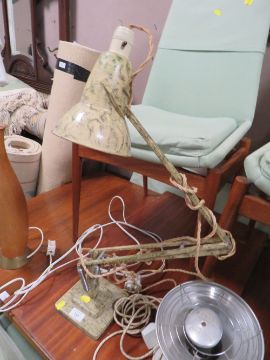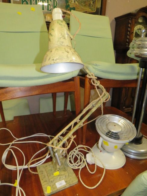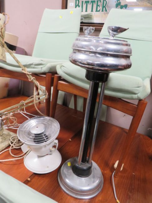 A VINTAGE ANGLEPOISE LAMP, CHROMED SMOKERS STAND, RETRO LAMP AND VINTAGE HEATER
