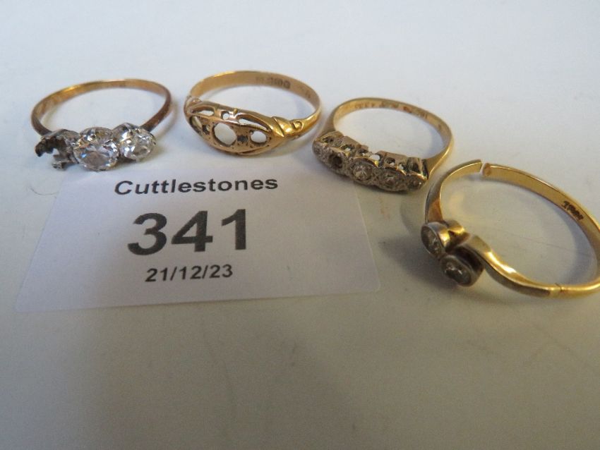EIGHT 18CT GOLD LADIES DRESS RINGS, ALL A/F, SOME MISSING STONES, TO INCLUDE DIAMOND SET EXAMPLES, APPROX W 16.5 G