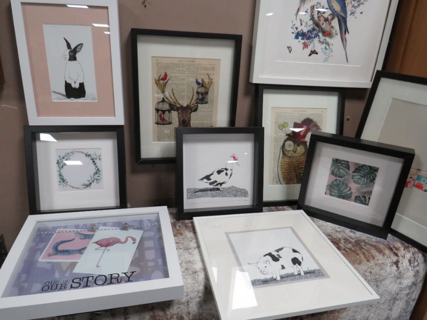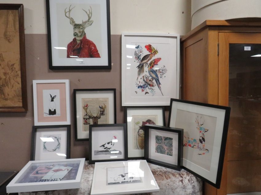 ELEVEN ASSORTED MODERN PRINTS INCLUDING STAGS (TOP WALL)