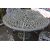 A CAST GARDEN PATIO TABLE WITH FOUR CHAIRS AND PARASOL