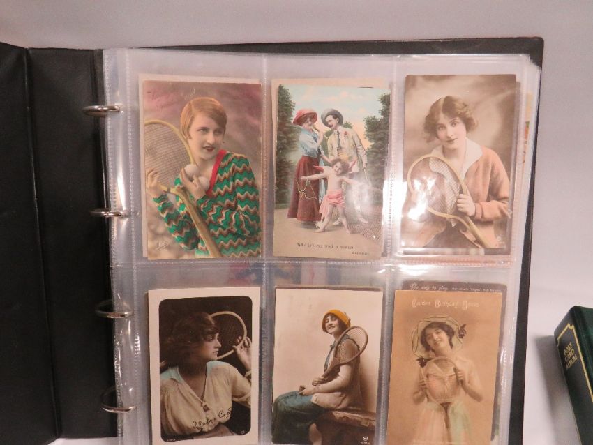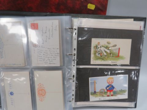 TWO ALBUMS OF VINTAGE POSTAGE TO INCLUDE SAUCY SEASIDE EXAMPLES ETC