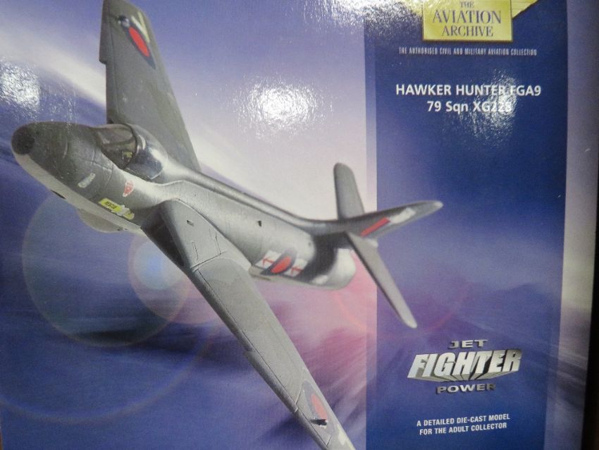 THREE BOXED CORGI THE AVIATION ARCHIVE AIRCRAFT TO INCLUDE HAWKER HUNTER FGA9 79 SQN XG228