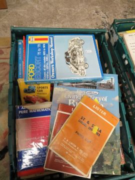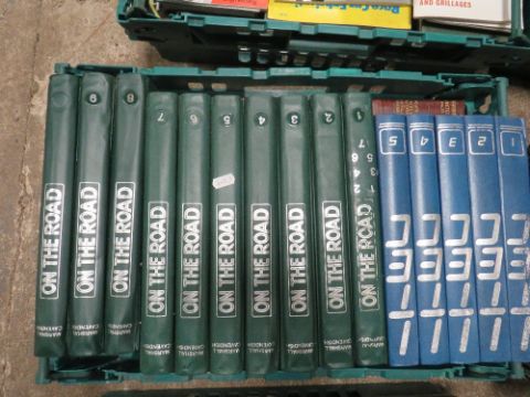 A LARGE QUANTITY OF VINTAGE BOOKS TO INCLUDE MANY VINTAGE MOTORING EXAMPLES ( PLASTIC TRAYS NOT INCLUDED)