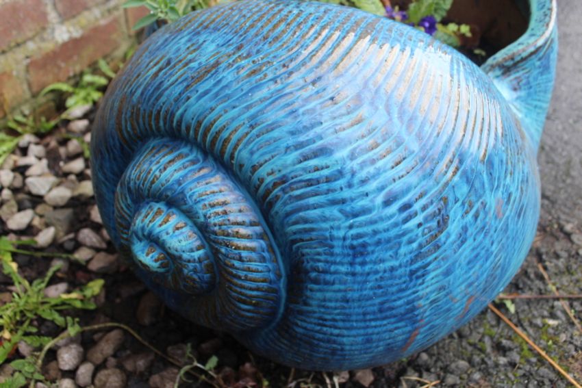 A LARGE CERAMIC SNAIL STYLE PLANTER