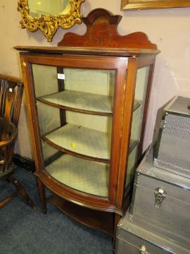 A MAHOGANY BOW FRONTED DISPLAY CABINET