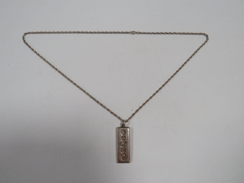 A MENS VINTAGE 1oz SILVER INGOT ON A SILVER CHAIN