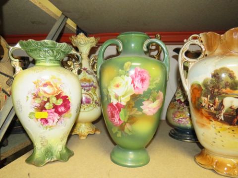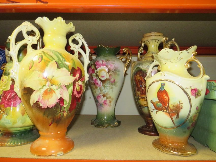 A LARGE COLLECTION OF DECORATIVE VASES TO INCLUDE TWIN HANDLE VASES