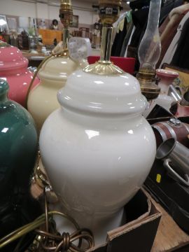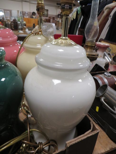 A BOX OF 4 ORTEGA COLOURED GLASS LAMPS