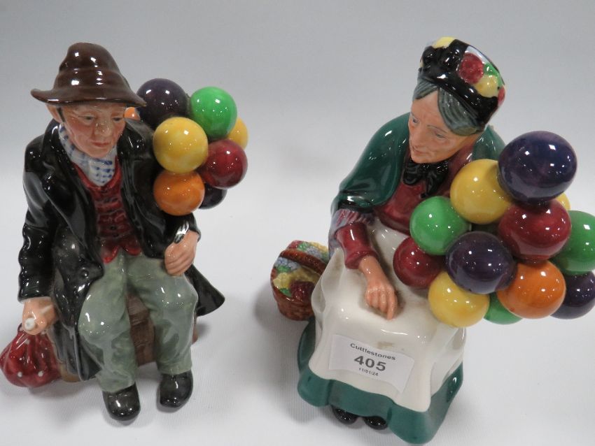 A ROYAL DOULTON "THE OLD BALLOON SELLER" TOGETHER WITH THE BALLOON MAN A/F (BALLOON MAN HAS A BROKEN BALLOON)