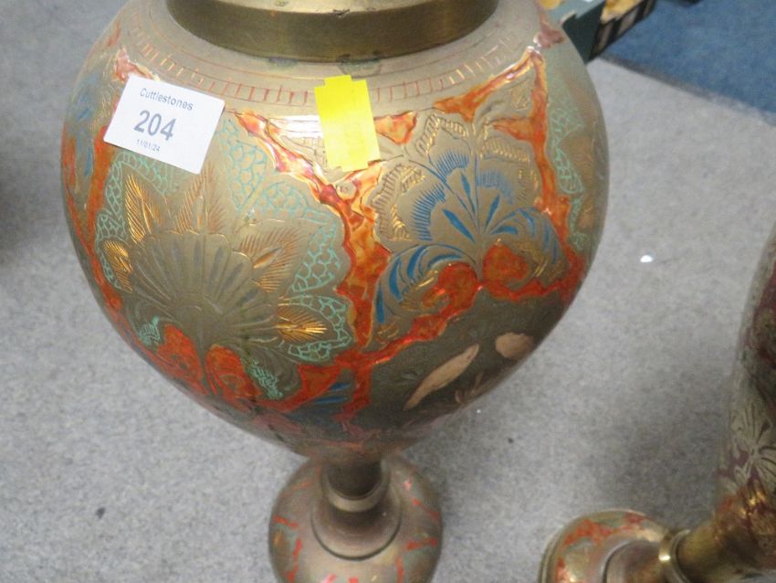 TWO LARGE DECORATIVE BRASS VASES HEIGHT 81CM