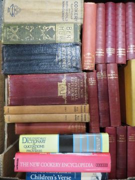 A LARGE QUANTITY OF VINTAGE BOOKS OVER 9 TRAYS(PLASTIC TRAYS NOT INCLUDED)