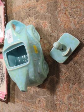 A VINTAGE SADDLER RACING A CAR TEA POT TOGETHER WITH TWO LUSTRE DECORATIVE WALL HANGING SHIPS DESIGN PLATES
