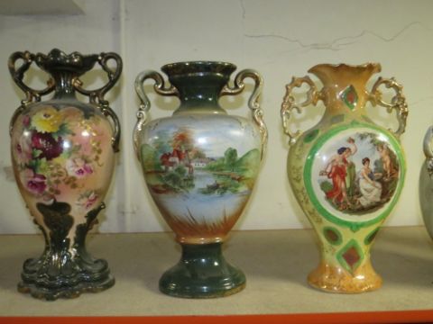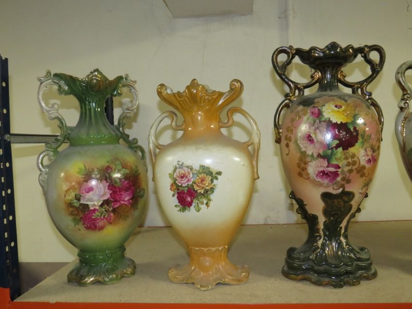 A COLLECTION OF DECORATIVE TWIN HANDLE VASES (7)