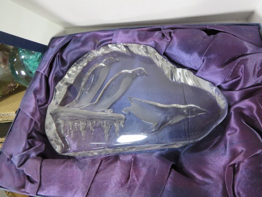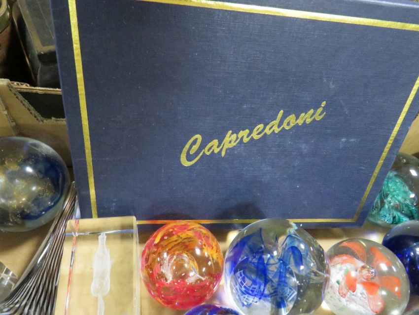 A TRAY OF ASSORTED GLASS PAPER WEIGHTS ETC TO INCLUDE CAITHNESS EXAMPLES