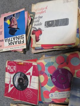 A TRAY OF 7 " SINGLE RECORDS TO INCLUDE THE MARMALADE, ROLLING STONES TOGETHER WITH A SMALL SELECTION OF 78'S AND LP RECORDS