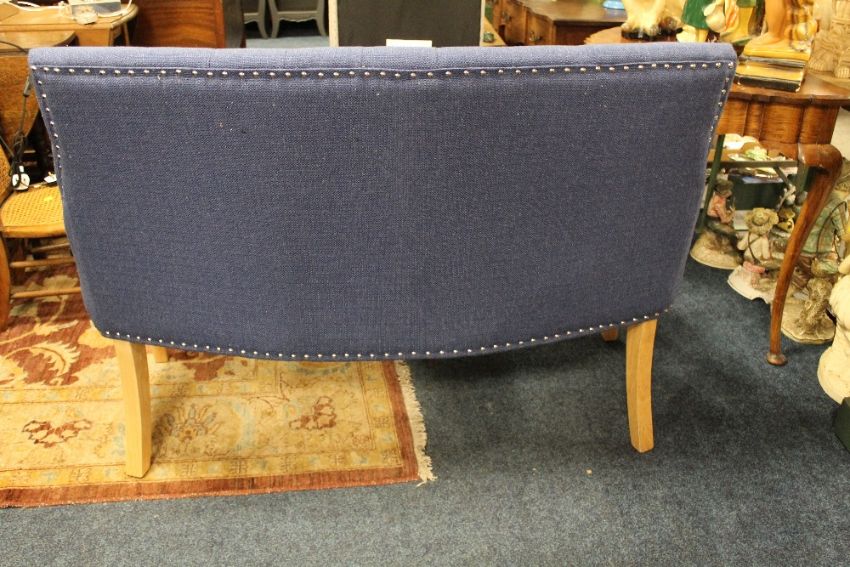 A MODERN BLUE UPHOLSTERED BENCH SETTEE - W 134 CM