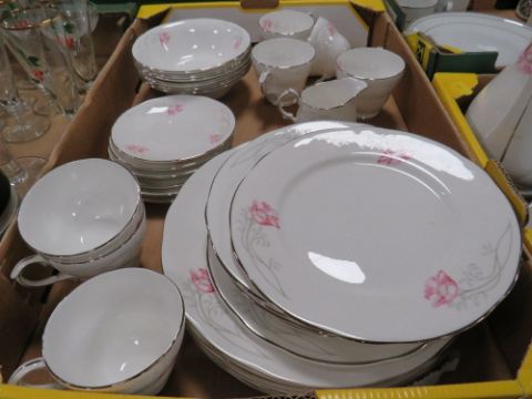 THREE TRAYS OF ASSORTED CERAMICS TO INCLUDE VINERS, DUCHESS ETC