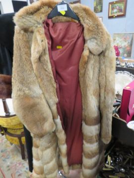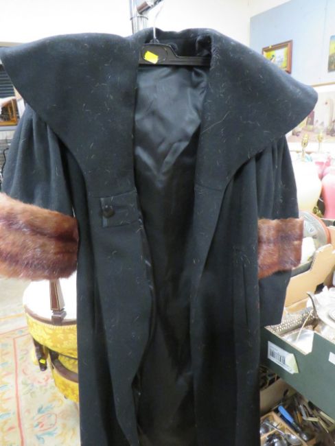 A LADIES VINTAGE CONEY FUR COAT TOGETHER WITH A VINTAGE BURLACADE COAT WITH MINK FUR TRIM