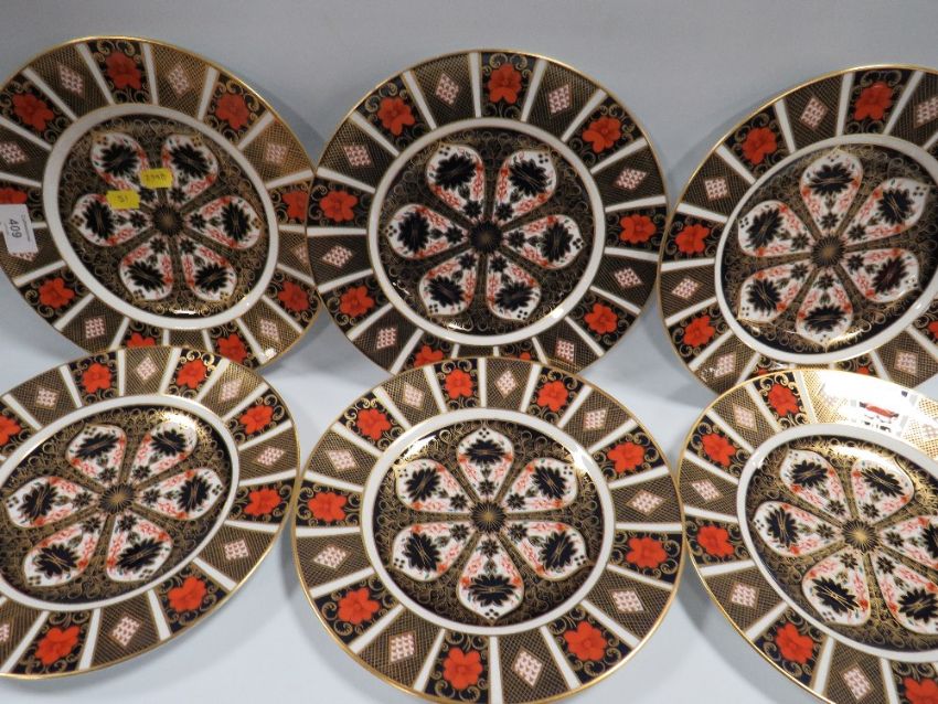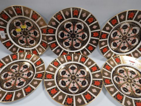 SIX ROYAL CROWN DERBY IMARI PATTERN PLATES, pattern no. 1128, Dia 17 cm