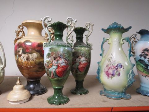A COLLECTION OF DECORATIVE VASES TO INCLUDE TWIN HANDLE VASES (12)