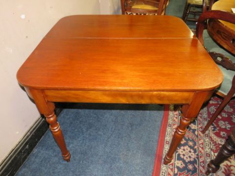 A THREE PIECE MAHOGANY EXTENDING TABLE