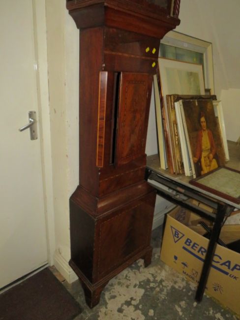AN ANTIQUE MAHOGANY CASED LONGCASE CLOCK CASE (FOYER)