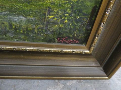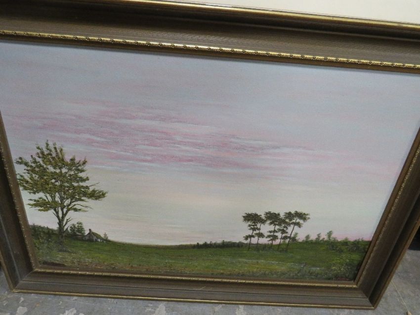 A LARGE FRAMED OIL ON CANVAS LANDSCAPE TOGETHER WITH A LARGE WATERCOLOUR
