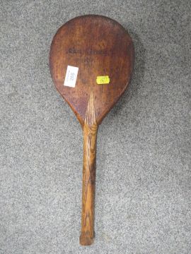 A VINTAGE WOODEN BAT INSCRIBED 'R.M.S. ALTONIA' AND INDISTINCTLY DATED