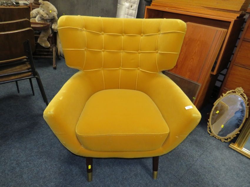 A MODERN MUSTARD UPHOLSTERED ARMCHAIR - S/D