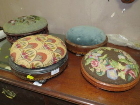 FOUR ANTIQUE SMALL FOOTSTOOLS TO INCLUDE INLAID EXAMPLES
