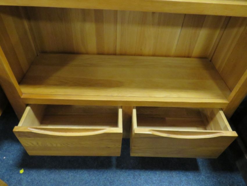 A MODERN OAK OPEN FLOORSTANDING BOOKCASE - H 180 cm, W 90 cm