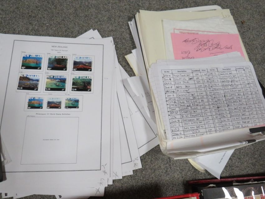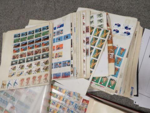 A STAMP COLLECTION TO INCLUDE SIX LARGE ALBUMS / STOCK BOOK, FOUR OF WHICH CONTAIN BRITISH STAMPS, ONE MAINLY NEW ZEALAND TAMPS AND ONE AUSTRALIAN STAMPS, TOGETHER WITH AN EMPTY STAMP ALBUM AND A LARGE QUANTITY OF LOOSE SHEETS OF MAINLY AUSTRALIAN AND NEW ZEALAND STAMPS