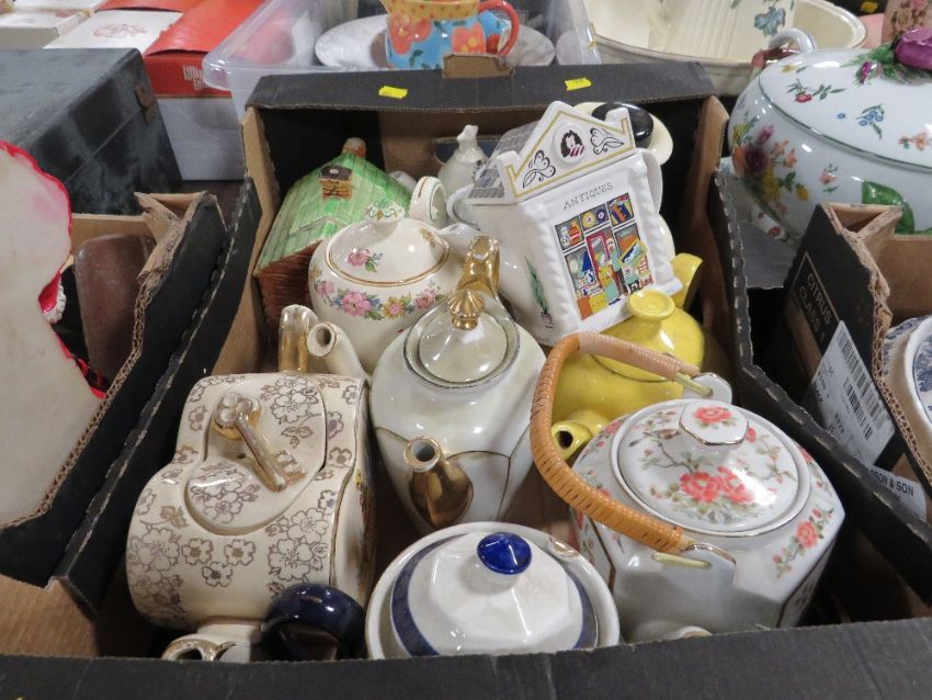 THREE OF ASSORTED CERAMICS ETC TO INCLUDE COLLECTABLE TEA POTS