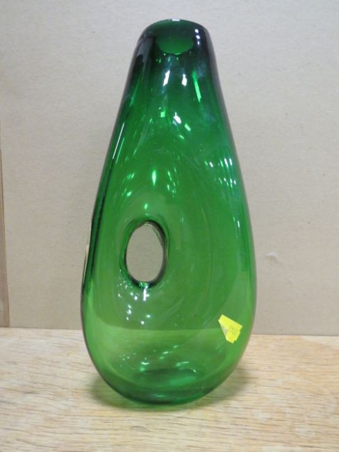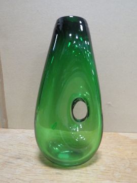 FULVIO BIANCONI MURANO ART GLASS FORATO GREEN VASE, CIRCA 1952