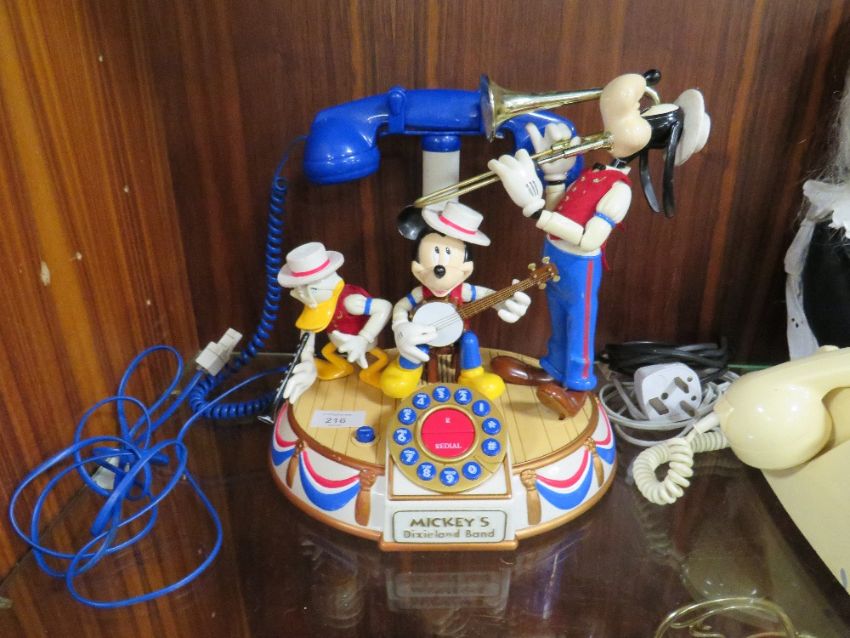 A VINTAGE DISNEY MICKEY'S DIXIE LAND BAND AUTOMATON MUSICAL TELEPHONE TOGETHER WITH A VINTAGE BELL RING TELEPHONE (2)