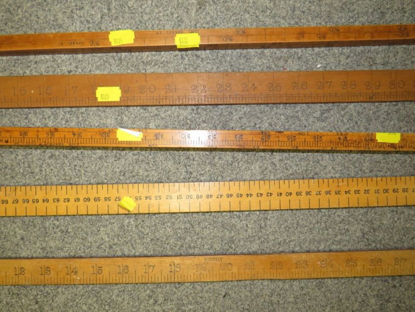 A SELECTION OF ASSORTED VINTAGE MEASURING STICKS (5)
