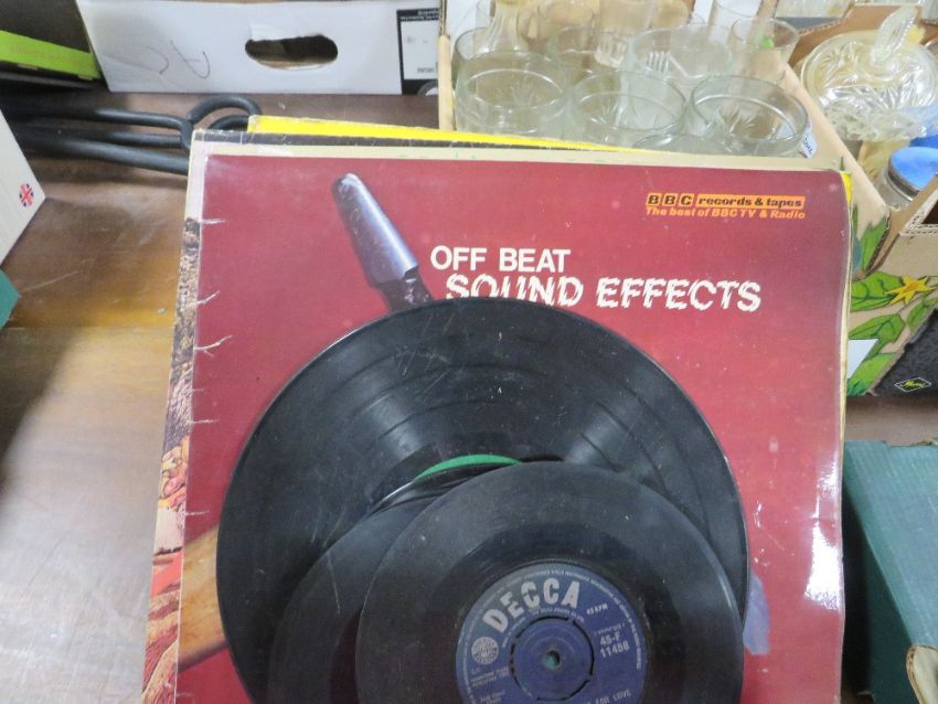 A VINTAGE FIDELITY PORTABLE RECORD PLAYER AND RECORDS