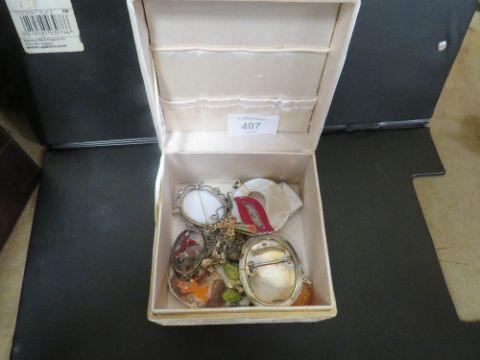 A SELECTION OF PENDANTS AND BROOCHES TO INCLUDE A SILVER EXAMPLES