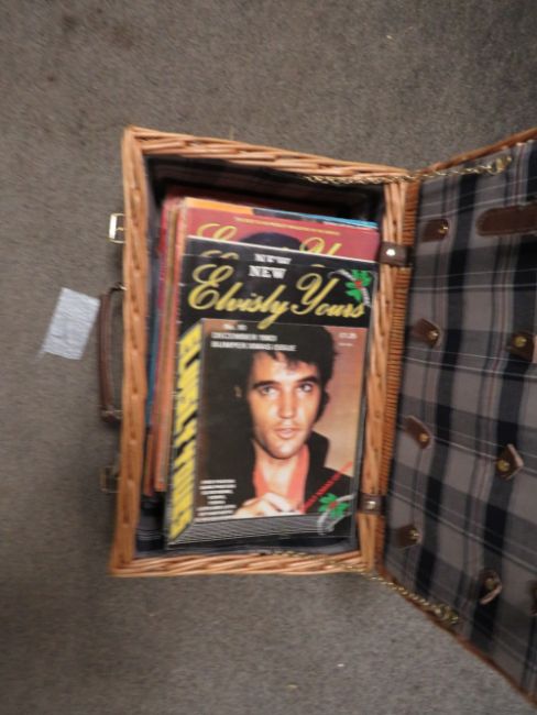 WICKER BASKET CONTAINING APPROXIMATELY EIGHTY ELVISLY YOURS MAGAZINES