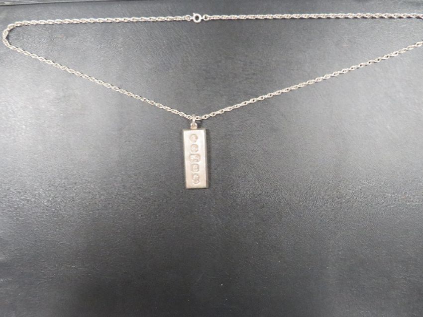 A MENS VINTAGE 1oz SILVER INGOT ON A SILVER CHAIN