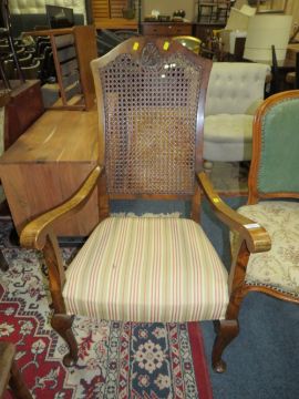 A VINTAGE BERGERE ARMCHAIR, BEDROOM CHAIR & OVAL MIRROR (3)