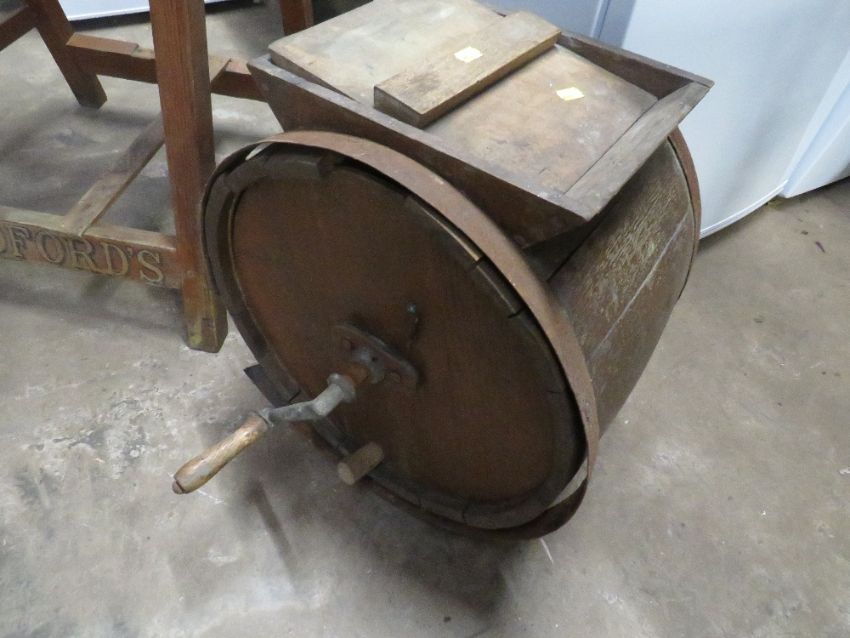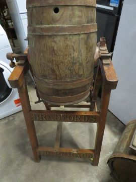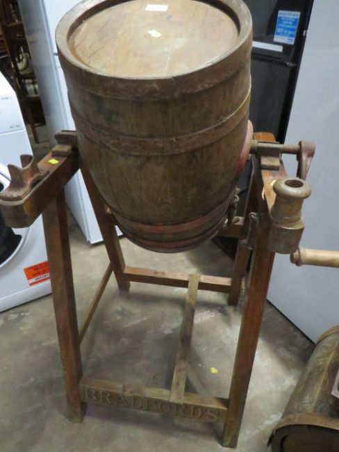 TWO VINTAGE BUTTER CHURNS - ONE BEING ON ORIGINAL STAND
